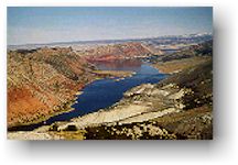 In 1869, Major John Wesley Powell, on expedition down the Green River, looked in awe at this magnificent country and named it Flaming Gorge. Today the brilliant red cliffs are scenic attractions for thousands of visitors annually. The heart of the National Recreation Area is a 91-mile-long reservoir, created by the Flaming Gorge Dam. With over 300 miles of shoreline, boat ramps, full service lodges and marinas, Lake Flaming Gorge is an aquatic paradise. While motor boating, sailing, swimming, windsurfing, water skiing, and scuba diving are among the lake's popular recreation activities, "The Gorge" is most famous for its fishing. The cool, clear depths of Lake Flaming Gorge are ideal for growing enormous trout. These famous angling waters have produced fish of state and world record size, including: lake trout(Mackinaw) over 50 pounds, German brown trout over 30 pounds, and rainbow trout over 25pounds. Flaming Gorge also supports numerous cutthroat trout, kokanee salmon, small mouthbass, and channel catfish. While the lake claims the big ones, the Green River below the dam is boasted as one of our nations finest blue ribbon trout streams. Fish populations here have been counted as high as 22,000 per river miles! White water rapids and gorgeous canyon scenery also lend to the popularity of river rafting below the dam and hiking Little Hole National Recreation Trail. Sheep Creek Canyon - the highly acclaimed Sheep Creek Geological Area is located adjacent to the Flaming Gorge National Recreation Area. The Geological Area includes the Uinta Crest Fault, which represents millions of years of earth history.