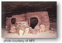 Horsecollar Ruin History I am very much thrilled over a discovery I made the other day. I was working about half way between Sipapu and Kachina Bridges and at lunch time I was in the narrow canyon where the sun does not shine very much at that time of year, but I could see that about thirty feet above me the sun was shining warm and bright on the cliff. I crawled up a broken ledge thinking that it would be nice to eat my lunch there when to my surprise I saw a ledge full of houses, within 80 yards of the trail over which I have walked for more than twenty years. There is one large kiva with the roof almost complete and a fine ladder standing in the hatchway with the small willows still holding the rungs in place. I could not tell how many rungs are on the ladder because of the debris which the pack rats have piled up around its base; only three and a half feet show between the top of the pile and the hatch. Beside the kiva are two well-preserved stone and adobe houses with no roofs but walls which are in a fine state of preservation. A small barrel shaped structure abuts against one of the houses. Six or eight rooms with walls of fine masonry but partly torn down are also on the ledge. There is a lot of broken pottery and flaked stone lying about. I picked up six arrow points and several broken ones. You know, I felt like a foolish kid to have passed so near these ruins for so many years and not know of their presence, but someone had found them before I did many years ago; a few pits have been dug in the ruins but the kiva has not been touched.Thus, Horsecollar ruins reentered the world of Natural Bridges. Not much has changed since Zeke Johnson's day. The ladder into the kiva is gone, and much of the debris inside has been removed. Sadly, one can no longer find pottery or arrowheads here anymore--practically everything has been taken away by other visitors. But much still remains here to delight the eye and mind. The kiva, for example, is incredibly well preserved, and a rare find. The roof remains original and unaltered by the Park Service. You can see how it was built--large roof beams, overlain by smaller branches, then by reeds and thin sticks, and finally covered by a generous layer of mud-plaster. The ladder, which once protruded from a hole in the roof, has been removed for safekeeping. More than 700 years old like the ruins themselves, it cannot stand to have people climbing on it. Amazingly, some visitors still try to climb inside, often destroying part of the remaining roof. However you don't need to climb in to see what's there. If you look in carefully from the side, you can still see the original fire pit near the center of the floor. In front of it is an upright slab of rock--a deflector stone designed to keep air currents coming from the ventilator shaft in the front wall from blowing out the fire. Toward the rear wall is a small hole called a "Sipapu," perhaps representing the gateway from which the Hopi believe one's spirit enters and leaves this world. There is also a "bench" against the back wall. Was it used as a chair? Storage? While we may never know such specifics, these things left by past peoples fuel our imaginations and add to our perspective. The round "Horsecollar" ruins at the far right end of the alcove are also much as Zeke Johnson first saw them. If you look closely, you can see which one was built first (Hint: one half is completely round, while the other is "stuck on" to the round one). No one knows the exact purpose of these unusual rooms. Why are they so perfectly round, and why did their builders not use the back of the alcove as a wall and save themselves much work? Were they ever roofed? If not, why bother constructing plaster floors? Were they used for storage? If so, why were fires lit inside them? If you come up with a good answer to this puzzle, feel free to jot it down in the register book or tell a Ranger. The remaining structures here--including living space, storage chambers, and at least one other kiva, are in various states of decay, but are still relatively well preserved. You may notice near this kiva a partially burnt piece of wood which has been neatly sawed in half. Archaeologists have taken a sample of the log to use for dating these ruins. Wetter and drier years have produced a pattern of thick and thin growth rings in the wood, which can be perfectly matched to a known pattern of these rings found in wood across the Southwest. This method, known as dendrochronology, allows scientists to tell precisely the age of a piece of wood, and often even the season in which the tree was cut. Because Natural Bridges has been part of the Park Service for so long, its ruins have been well studied and now provide the longest running complete record of tree-ring dates in the Utah, and one of the best in the Southwest. The record is often used by archaeologists elsewhere to date wood. One hundred meters to the north, along this same cliff level, is the north section of Horsecollar Ruins. They consist of several large, finely mortared rooms, with one additional area in front made of stones laid without mortar, and crudely built compared to the others. Why was this oddball room built? Perhaps the builders did not have the luxury of time to make a finely mortared structure. Perhaps fine construction was not necessary, the room being simply a storage room, or for summer use, or maybe a "playpen" to allow small children to be outdoors but away from the cliff edge. Interestingly, one of the doorways here was remodeled to make a smaller opening. Perhaps this was done to conserve heat in the winter, or to impede entry in case of attack. Horsecollar is among the largest and best preserved ancestral Puebloan structures in the Monument. It stands as a reminder that people have lived here for hundreds of years and that we are but the latest visitors in this fragile and beautiful place.