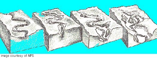 As you can see from the illustration, the force of the stream eventually cut a hole through the fin. Rainbow Bridge was created when the stream altered course and flowed directly through the opening, enlarging it. This process continues to this day, imperceptibly altering the shape of the Bridge. The same erosional forces which created the bridge will, eventually, cause its demise. Rainbow Bridge, along with the rest of the spectacular landscapes of the Colorado Plateau, will exist for only the blink of an eye in geologic time. We should consider ourselves fortunate, indeed, to be witness to these awe-inspiring formations. Let us treasure them while we can.